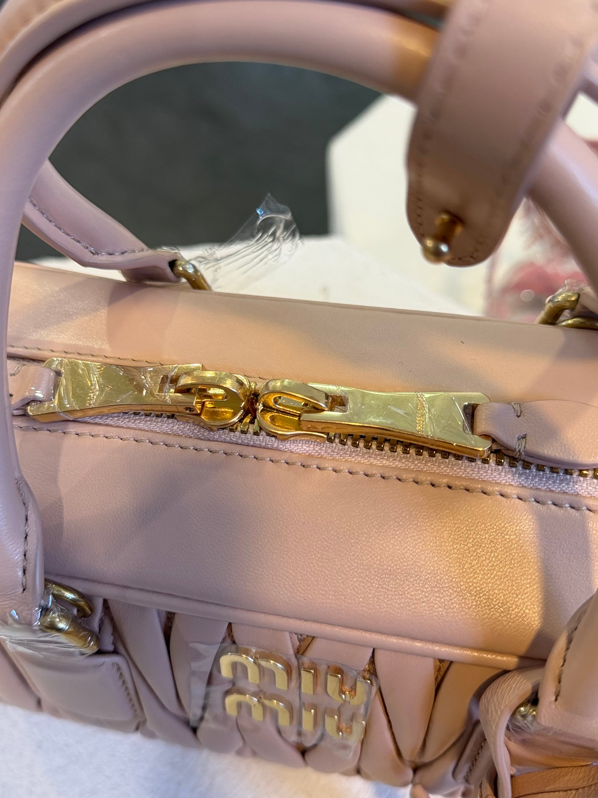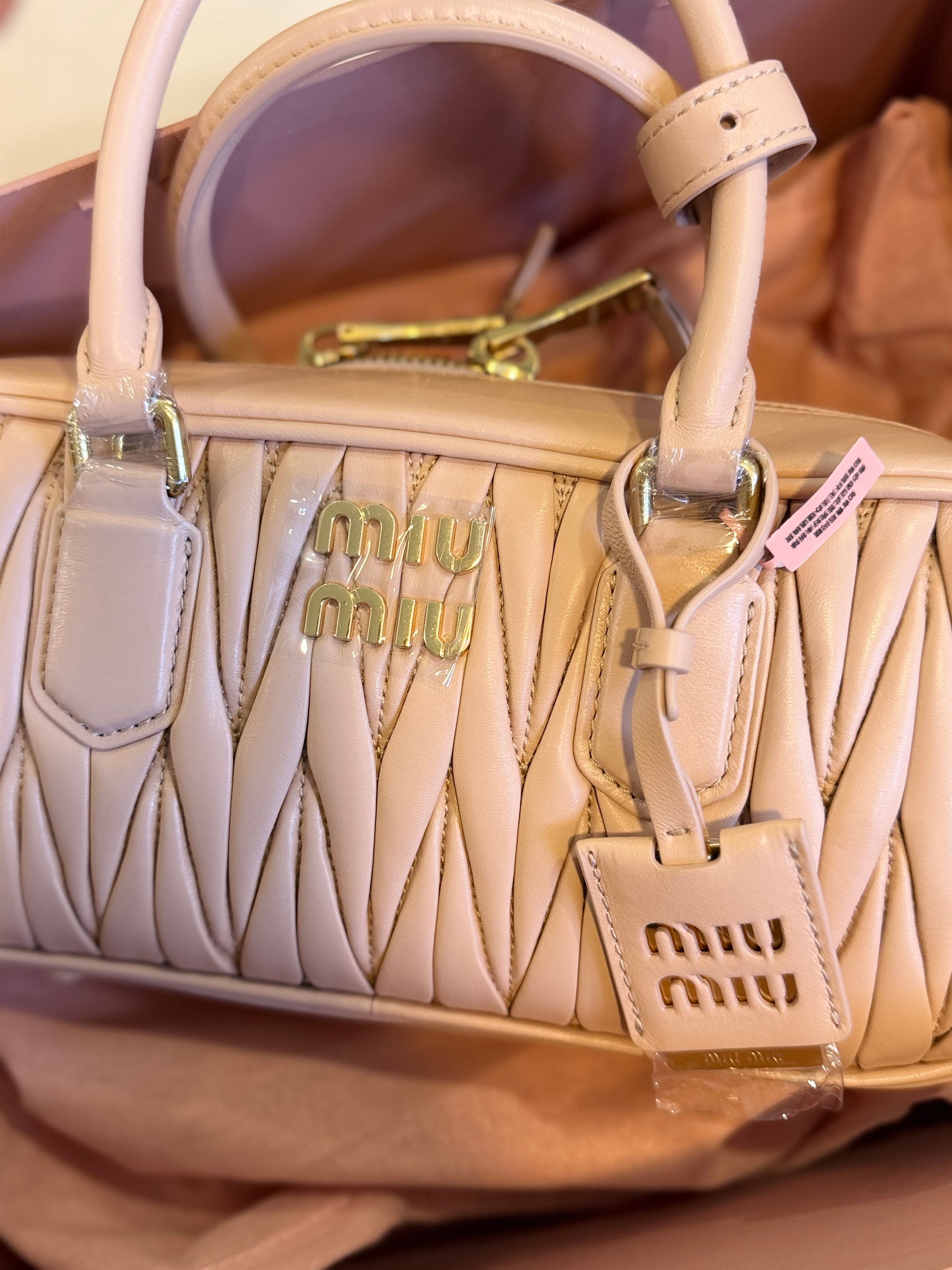 • Herrajes: Metal dorado con logo grabado
